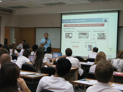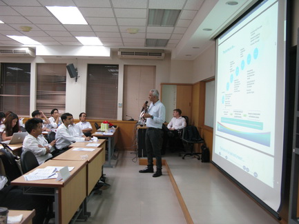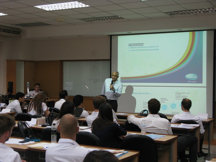 "Current Issue in Finance" class of Ajarn Alan Kam had Khun Vivek Dhawan, CEO of MegaLife Science Public Company Limited spoke to the class on the company's corporate governance accolades from the SET investors award, its successful track record in Myanmar and the company's long term vision in a globally competitive pharmaceutical business.