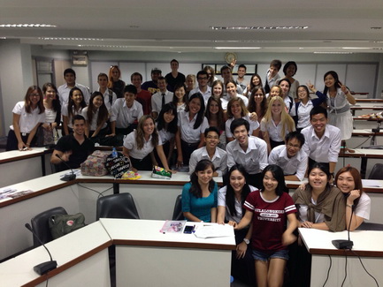 This year's Thai Class for the first semester of 2014 was held on the 20th and 25th of August by the BBA student Council. The student council aims to teach exchange students basic Thai language to help them get around in their daily life and also Thai culture such as the do's and don'ts. We are also intent on showing them ways of getting around Bangkok and to other major attractions.
