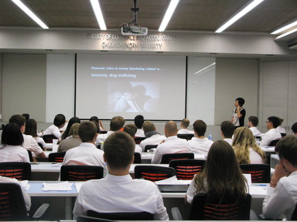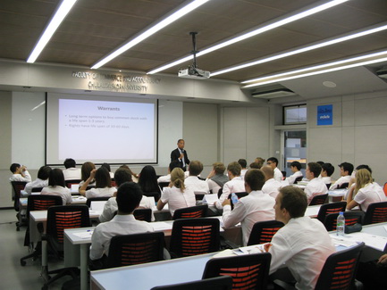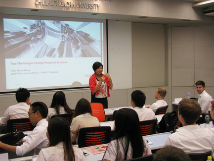 Ajarn Alan Kam invited Ms. Tan Siew Meng, CEO of HSBC Thailand to talk about timely subject of "Financial Fraud" in his Current Issue in Finance class on Wednesday September 3rd, 2014.